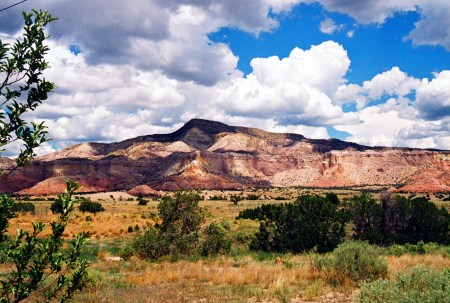 Northern New Mexico north of Santa Fe is arid but beautiful. We drive through that part of New Mexico every year on our pilgrimage to Pagosa Springs Colorado. I always stop and take a few photos. This is also the countryside that Georgia O’Keeffe loved to paint. I took this particular photo with my Canon Film SLR probably with Kodachrome (Kodachrome is dead, long live Kodachrome).